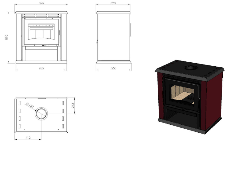Calefator de dupla combustão em aço carbono. Capacidade de aquecimento 312m³