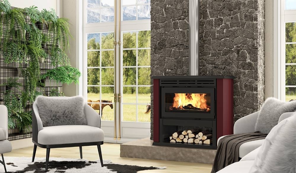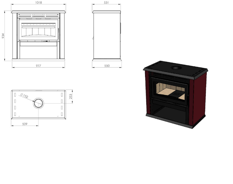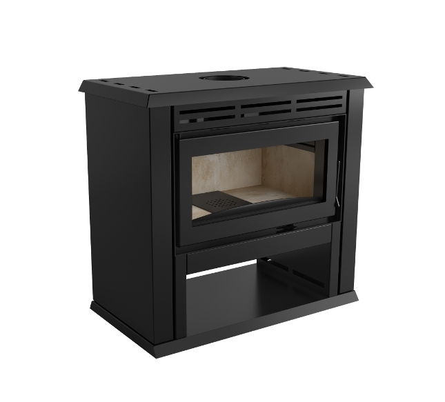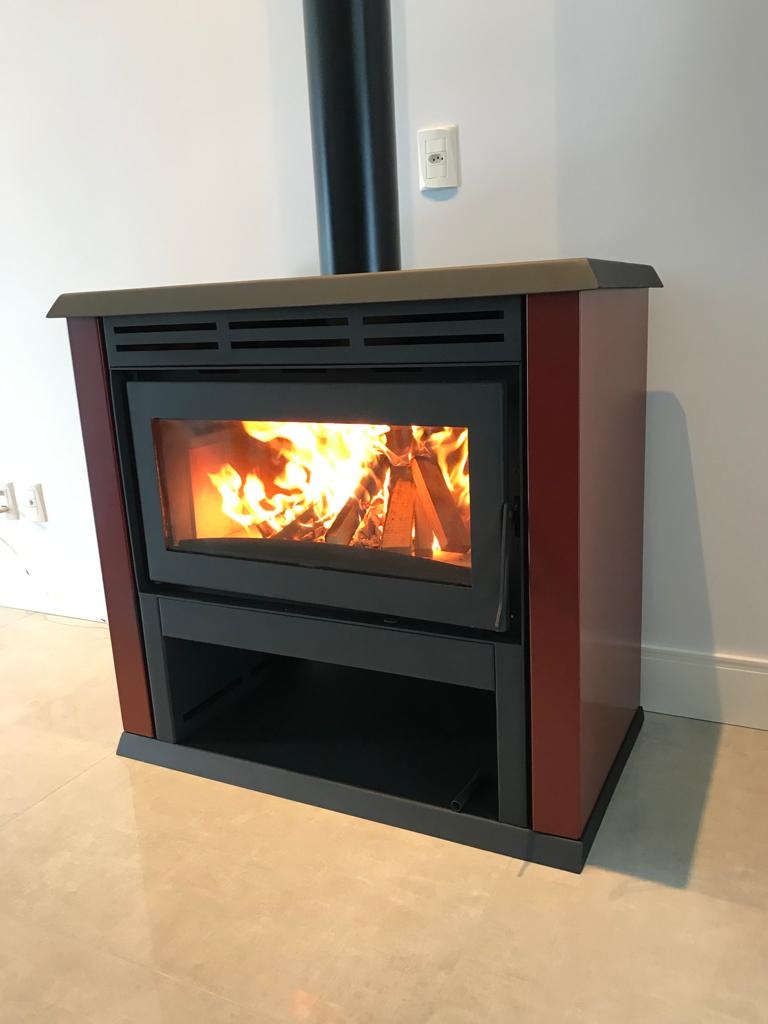 Calefator de dupla combustão em aço carbono. Capacidade de aquecimento de 416m³